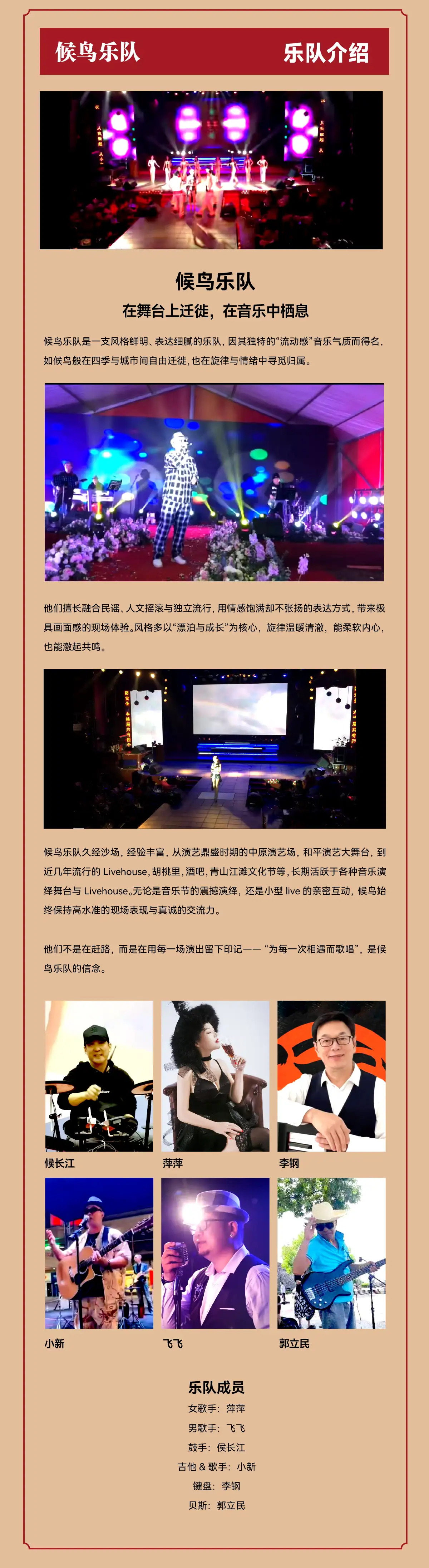 经典醉人的旋律,夹带着岁月的洗礼,带领观众领略每首歌背后的难忘故事,11月28日至12月26日就在武汉LiveHub剧场,就在候鸟乐队“鸣谷”演唱会!