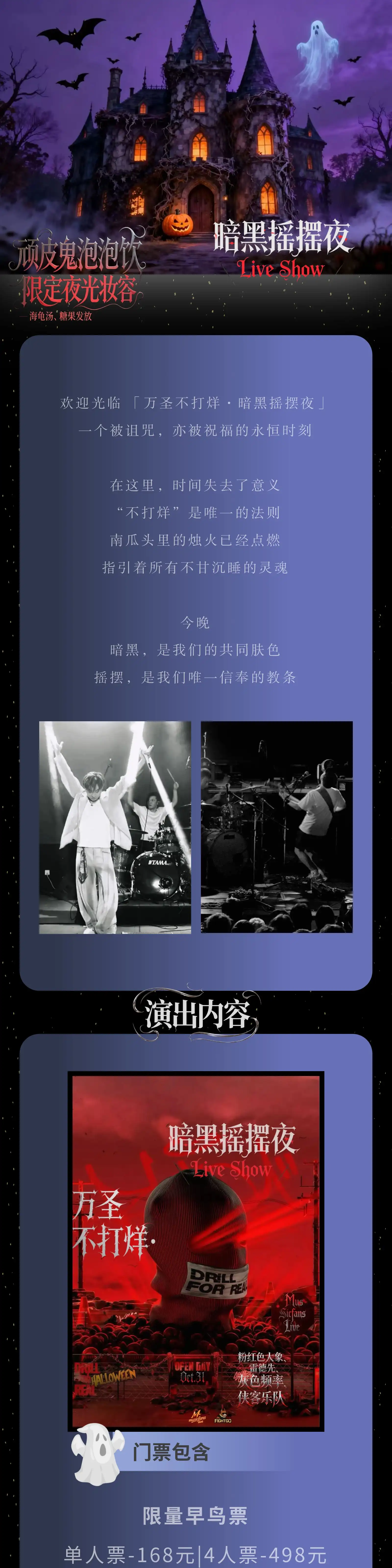 【泡泡饮&限定夜光妆容&万圣糖果&现场live&海龟汤npc带玩&现场摄影当场传送】
