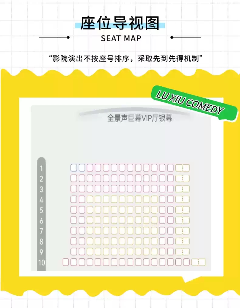 *所有的票我们是不分区座的,无固定座位,前排座位先到先得,凡是购买的票都有座位;