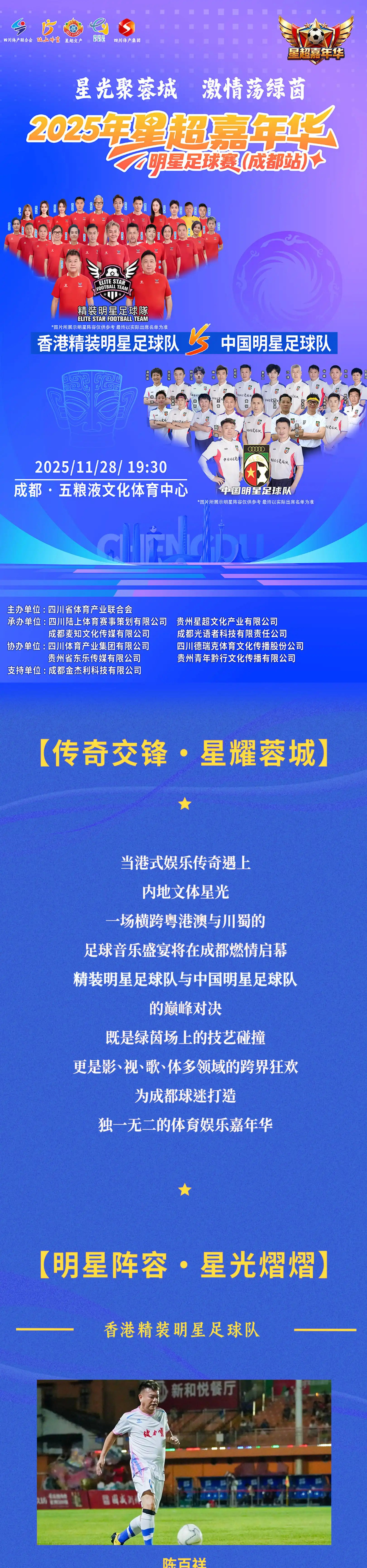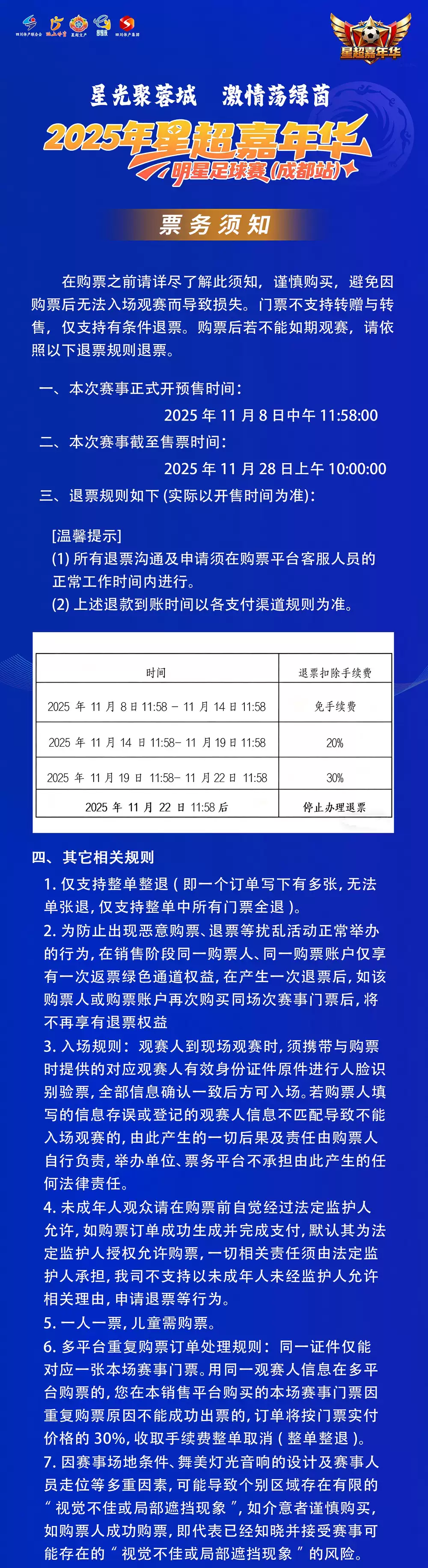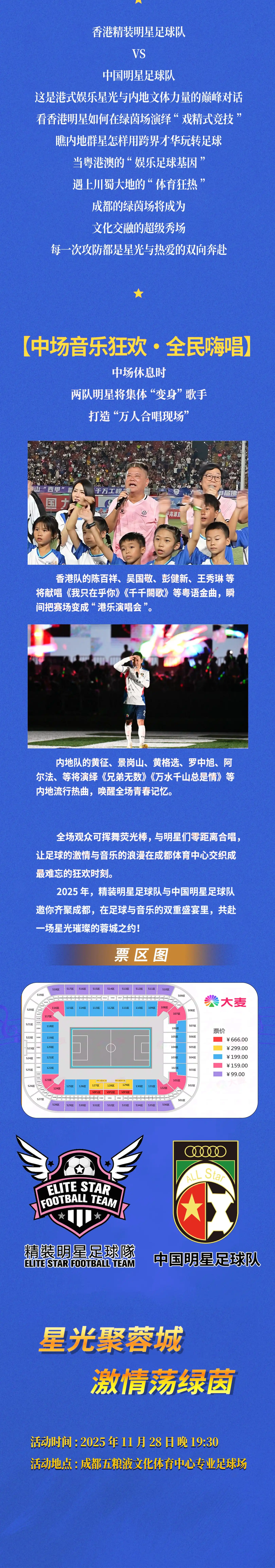 演出时间 2025-11-28 周五 19:30 演出场馆 五粮液文化体育中心专业足球场 演出时长 以现场为准 儿童入场提示 儿童一律凭成人票入场 演出详情