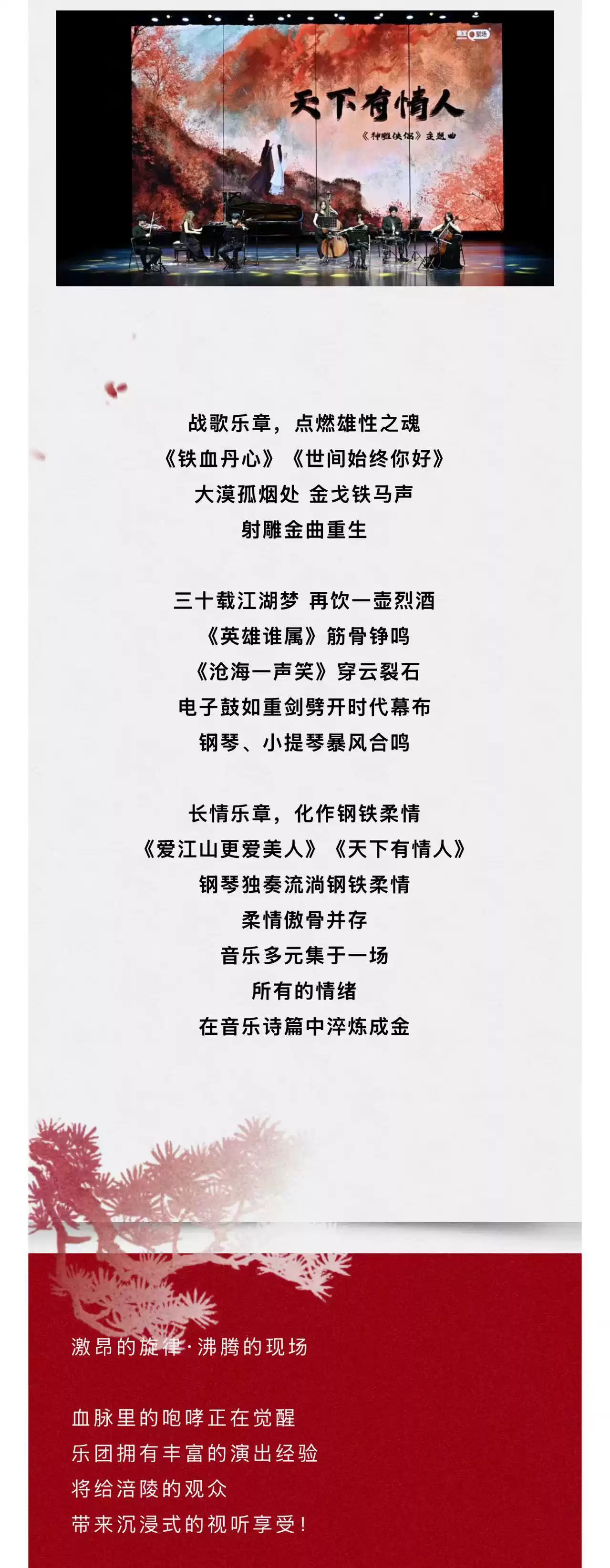 当琴声和鸣划破岁月长河当燃情侠影在旋律中重生,《铁血丹心》燃情音乐会邀你以乐为剑,重走快意恩仇的高燃岁月,重构你心中的热血图谱!