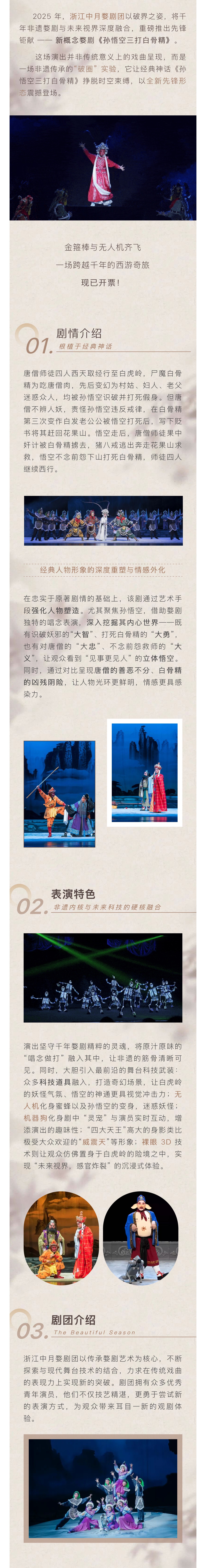 浙江中月婺剧团将携这部备受好评的口碑力作——新概念婺剧《孙悟空三打白骨精》,遗婺剧与未来视界深度融合,带来一场兼具传统神韵与先锋气质的视听盛宴。