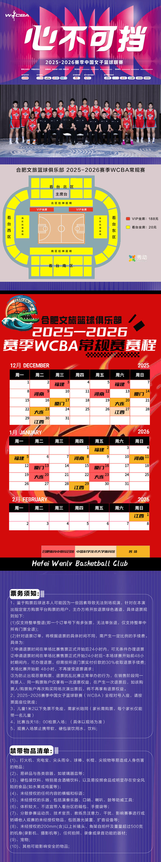 以体育力量诠释城市精神,助力合肥文化体育事业高质量发展,为城市赢得更多荣誉与喝彩,以文体融合之势,彰显合肥城市文化体育发展的多元魅力!WCBA 2025-2026赛季战火即将燃起!!