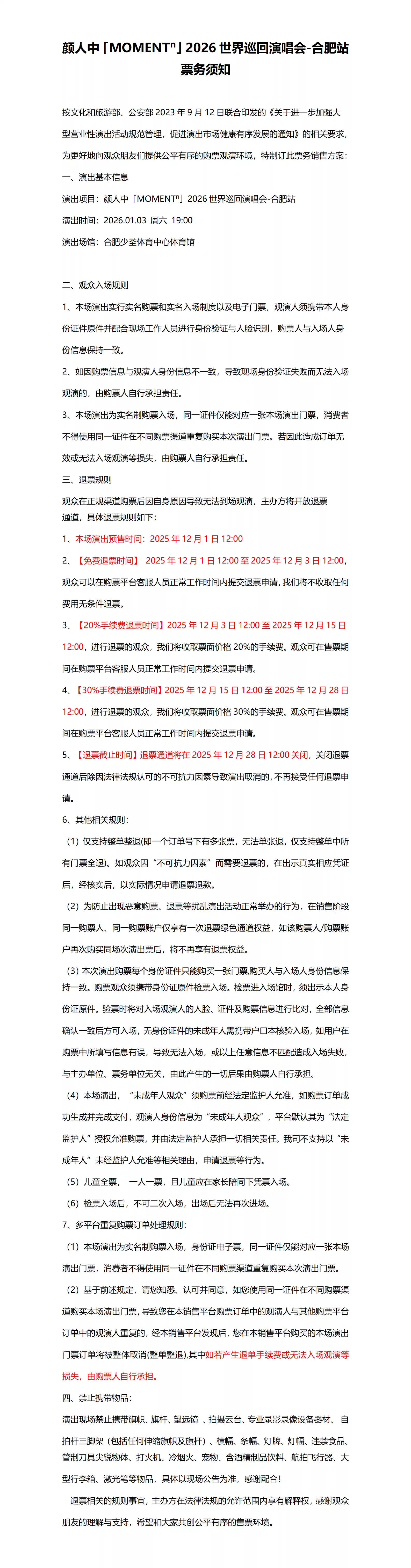 2.若演出受不可抗力影响延期或取消,本平台将对演出票订单按照项目官方通知方案进行处理,其他因观演发生的费用需由您自行承担。