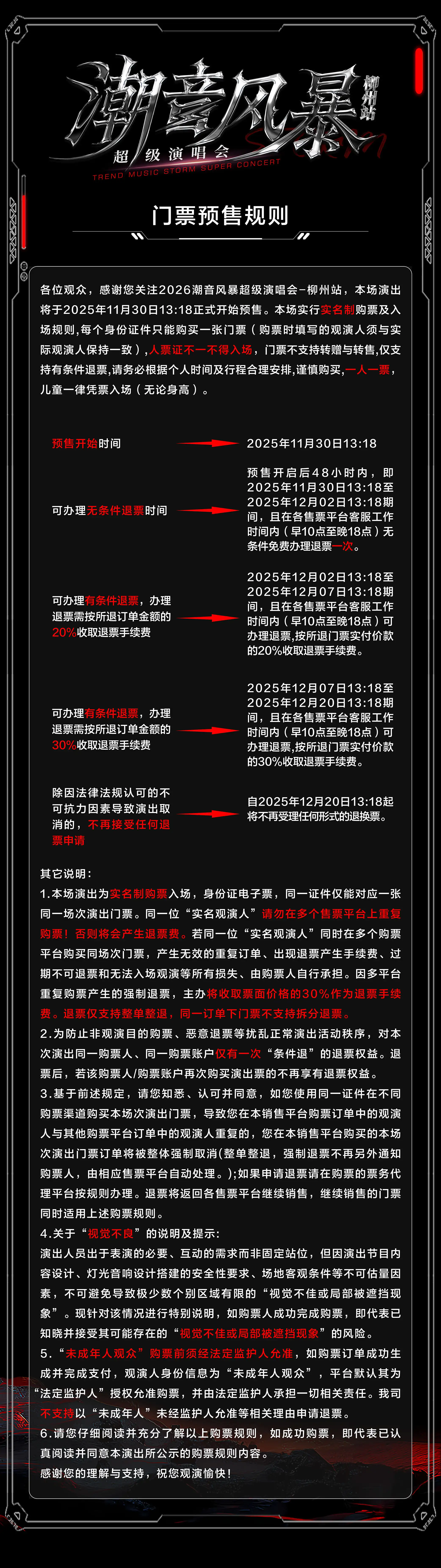 1.购买前请您提前规划好行程,做好相应准备,以免影响您的正常观演,感谢您的理解和配合。