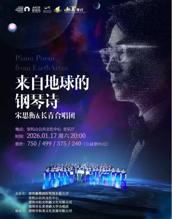 2026年1月17日,深圳市安托山公共文化中心音乐厅,宋思衡&长青合唱团《来自地球的钢琴诗》以钢琴为笔,描绘了从地球诞生初的静谧到人类文明的情感万象!