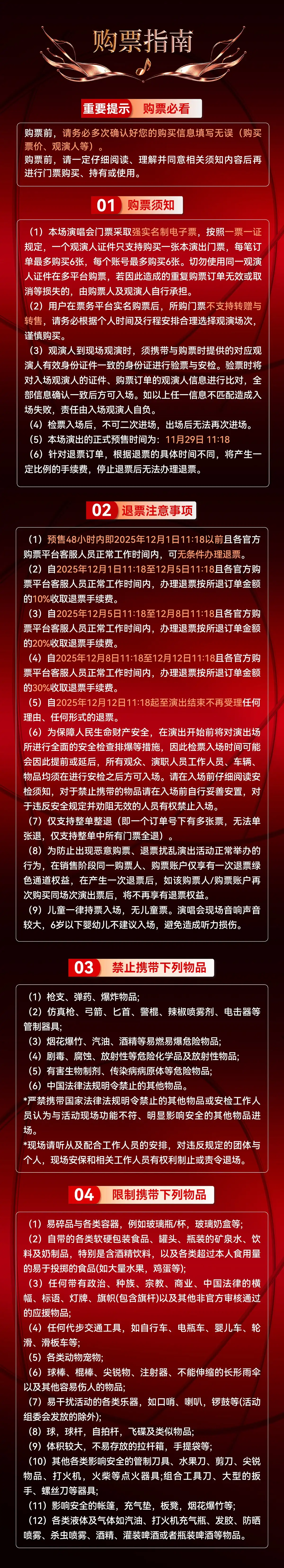 1.购买前请您提前规划好行程,做好相应准备,以免影响您的正常观演,感谢您的理解和配合。