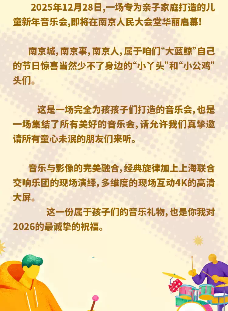 2025年12月28日,南京人民大会堂,2026南京亲子新年合唱交响音乐会,一场专为亲子家庭打造的儿童新年音乐会华丽启幕!
