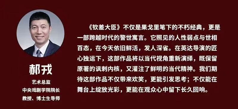 果戈里的喜剧巨作从来不会过时,而当 “中国情景喜剧之父” 英达联手三大顶级制作单位,再配上黄宏、刘威等戏骨云集的全明星阵容,这场《钦差大臣》的全国巡演,注定是 2026 开年最值得期待的戏剧盛宴!