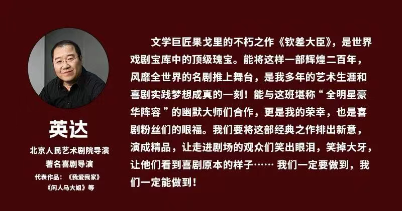 一部跨越世纪的讽刺巨著,一次喜剧大师的匠心再造,英达导演以其独到的喜剧洞察与舞台驾驭力将果戈里笔下的官场现形记淬炼成了一面当代人会心莞尔的镜子!