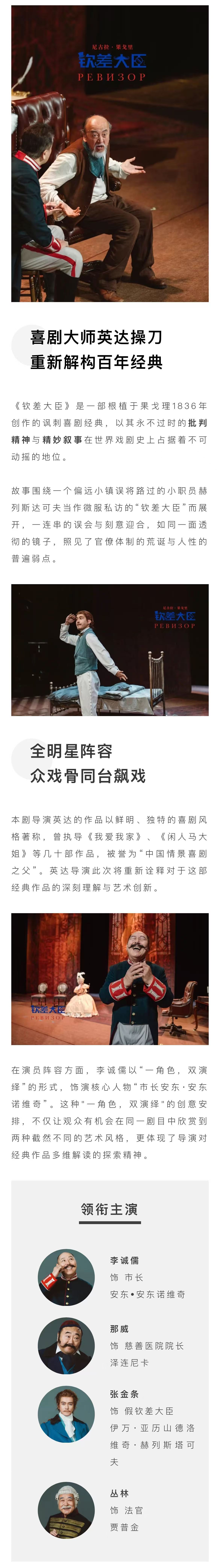 2026年1月2日至3日,深圳坪山大剧院,李诚儒、张金条、那威、丛林领衔主演喜剧《钦差大臣》用简洁的舞台语言塑造一个生动的荒诞世界!