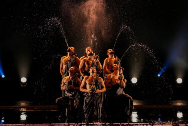 该舞剧由俄罗斯顶级编舞大师Rustam Nadyrshin领衔创作,巧妙融合了现代舞、街舞、古典舞、芭蕾舞、霹雳舞,并融入了体操、杂技等技巧,在湿滑的舞台上,舞者们展现出惊人的身体控制力和核心力量,完成托举、跳跃、旋转、人体喷泉(舞者含水喷向天空)等一系列高难度技巧,堪称“雨中普拉提”或“隐形健身课”。